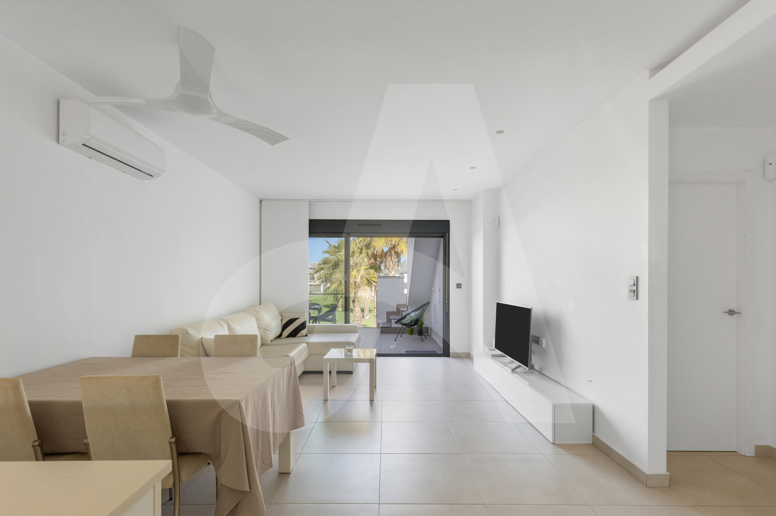 Beim Betreten der Wohnung werden Sie von einem eleganten und modernen Interieur mit wohnlichem Ambiente begrüßt. Die Wohnung verfügt über ein geräumiges Wohnzimmer mit einem Fernseher, der Zugang zu weltweiten Kanälen bietet, eine moderne offene Küche (voll ausgestattet mit Herd, Backofen, Mikrowelle, Geschirrspüler, Senseo-Kaffeemaschine und Waschmaschine), zwei Schlafzimmer (eines mit Fernseher), zwei Badezimmer, einen Balkon mit Blick auf den schönen Garten mit Swimmingpool und eine geräumige, voll ausgestattete Dachterrasse mit Panoramablick, perfekt zum Entspannen und Genießen des schönen spanischen Wetters. Wi-Fi ist verfügbar und alle Zimmer sind klimatisiert. Privatparkplätze können in der Tiefgarage genutzt werden.