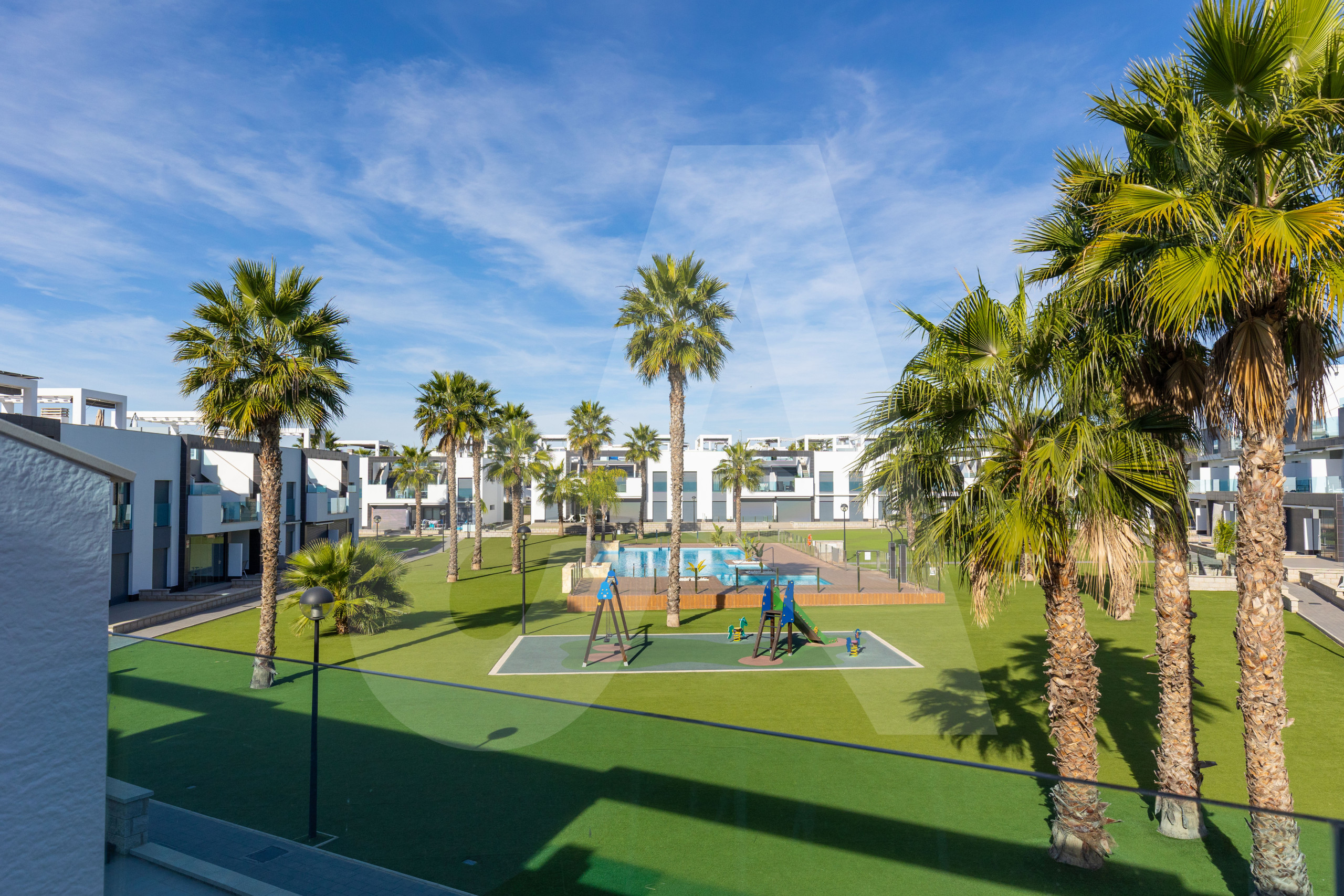 Verder biedt dit penthouse naast de twee gemeenschappelijke zwembaden ook toegang tot faciliteiten zoals een fitnessruimte, een spa (gesloten van 1 juni tot 30 september), een tafeltennistafel en een speeltuin.